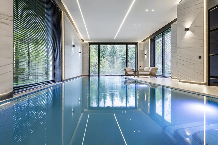 Особое внимание уделено внедрению систем умного дома и автоматического управления бассейном. Все инженерные системы объединены в единый цифровой контур с возможностью управления со смартфона.
